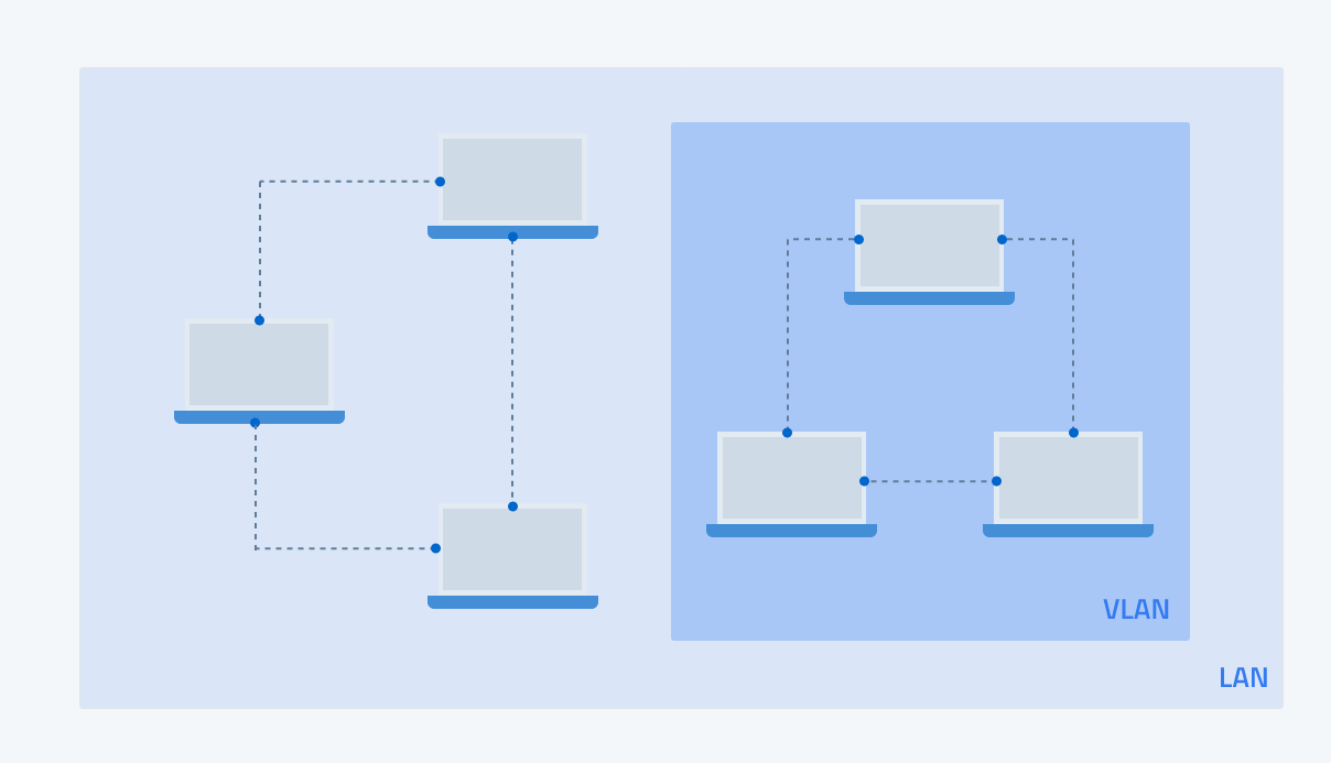 If we compare LAN to a house, then the kitchen would be VLAN. Another example can be a campus with LAN, with a single faculty using its own VLAN.